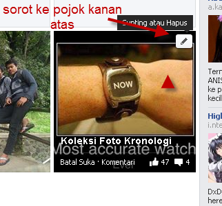 4. Setelah itu klik gambar pensil pada pojok kanan atas pada gambar tersebut -- pilih laporkan/hapus tanda